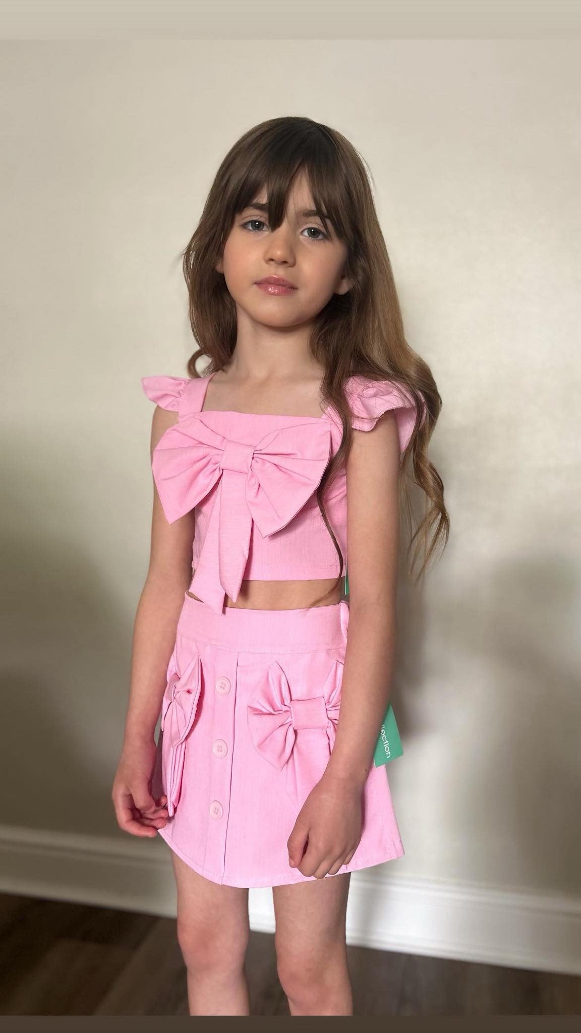 Pretty pink 2 piece set, comes with top with bow detail & matching skort.