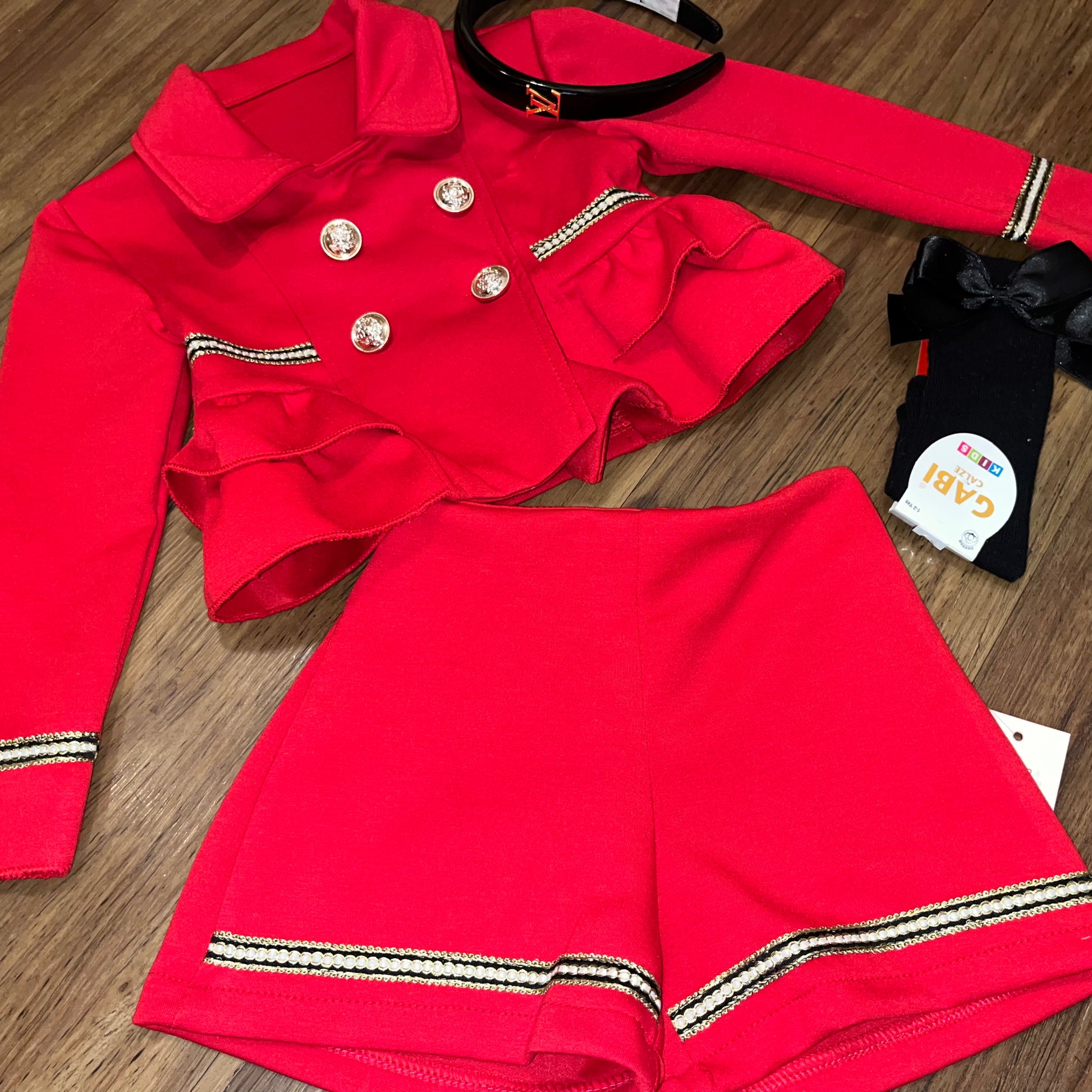 Introducing our Peplum Short Set, designed with soft fabric for comfort and style. The ruffle peplum blazer adds a smart touch, while the gold buttons add a touch of elegance. Perfect for girls aged 2-12, this set is a must-have for any fashion-forward youngster.