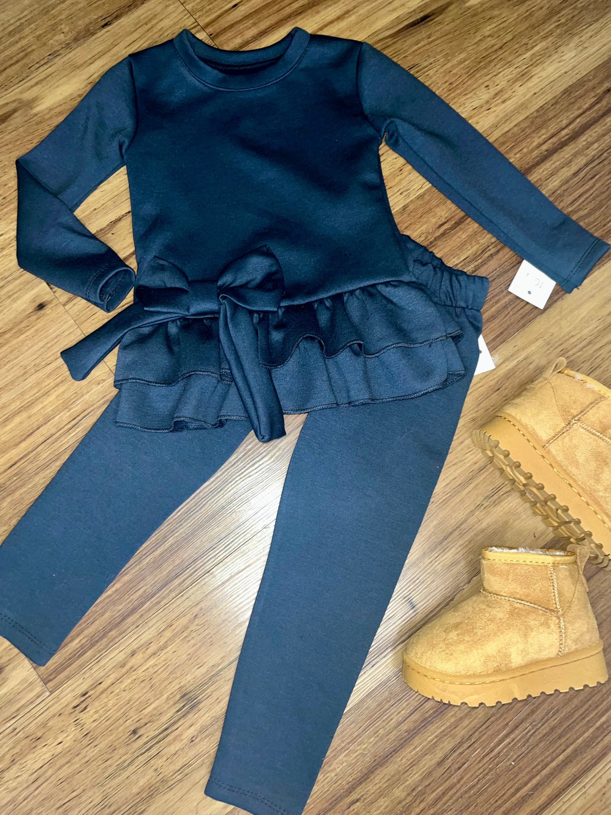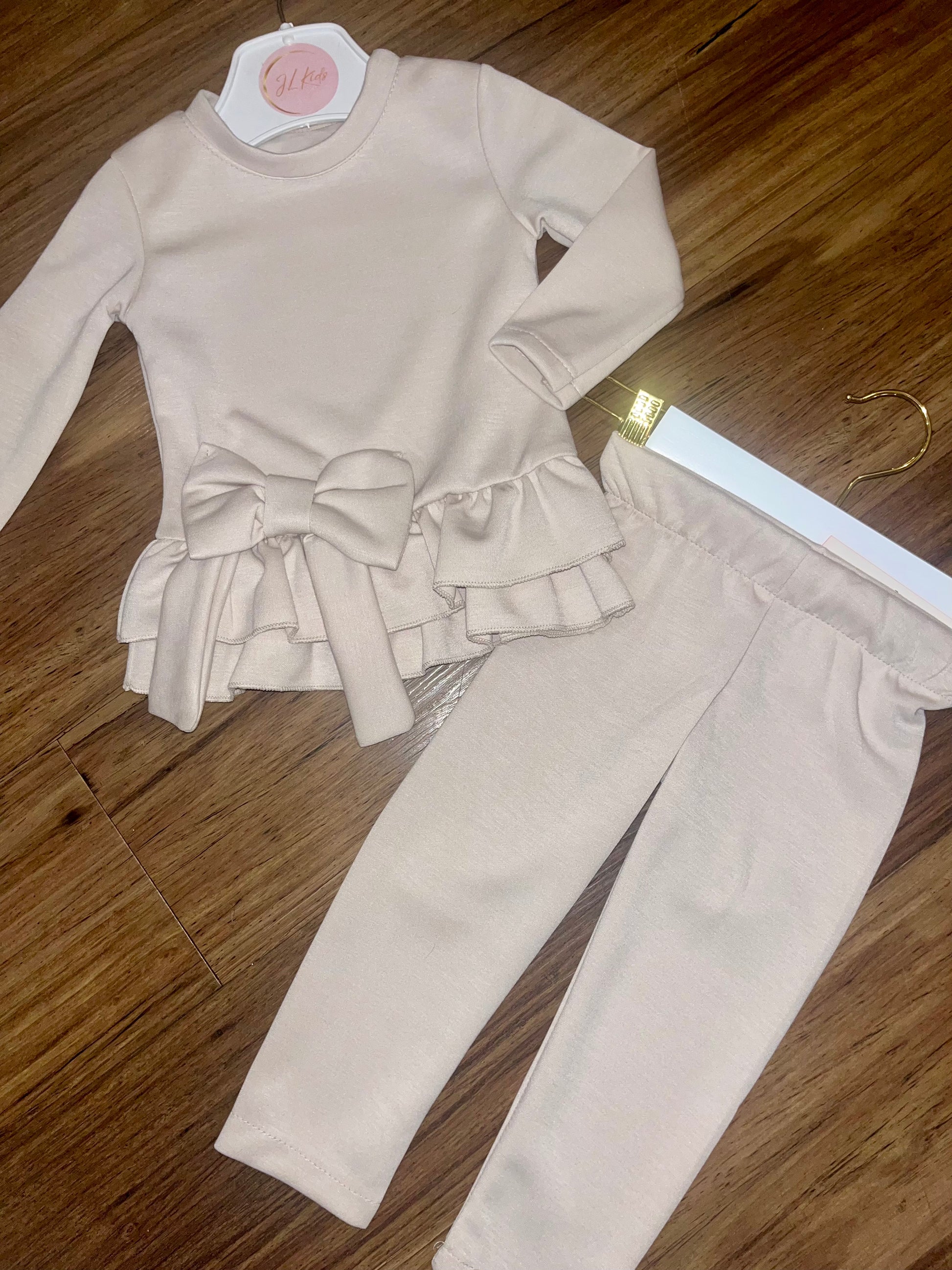 The Rosie Loungeset is perfect for girls aged 1-10, featuring a charming ruffle hem bow detail long sleeve top and matching leggings for a coordinated look. Made from super soft fabric, this loungeset offers both style and comfort.